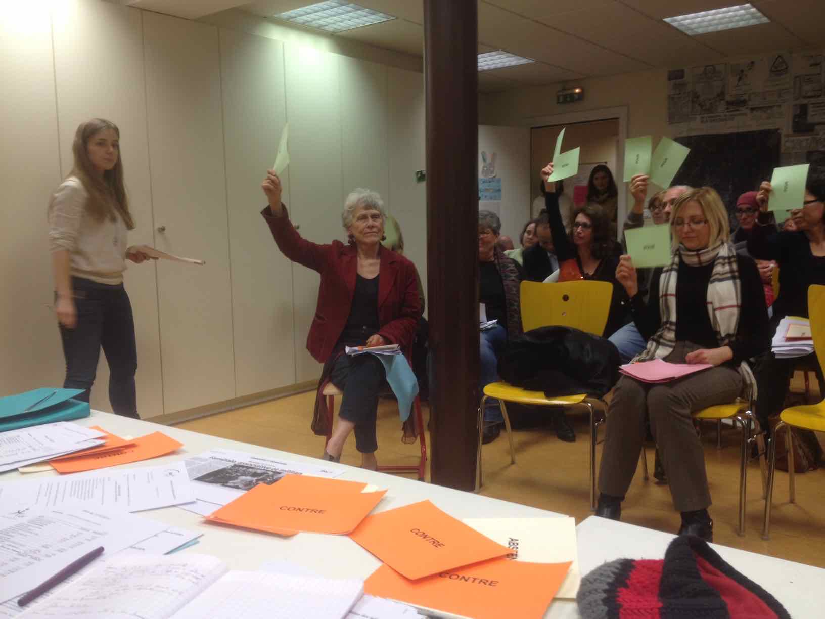 Cette soirée a été l’occasion de faire le point sur l’année écoulée, à travers la présentation et la mise au vote du rapport moral, du bilan des activités ainsi que du rapport financier pour l’année 2015. Ce temps de vie associative a également été l’occasion de prendre des dispositions pour l’année suivante : présentation et mise au vote des cotisations 2016-2017, du rapport d’orientations et élection des membres du nouveau Conseil d’Administration.
